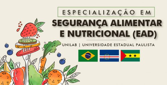 A Pró-Reitoria de Pesquisa e Pós-Graduação (Proppg), a Pró-Reitoria de Relações Institucionais Pró-Reitoria de Relações Institucionais (Proinst), o Instituto de Desenvolvimento Rural (IDR), em cogestão com o Instituto de Educação a Distância (IEaD), da Universidade da Integração Internacional da Lusofonia Afro-Brasileira (Unilab), e em cooperação com a Universidade Estadual Paulista (Unesp), por meio do Instituto de Biociências, tornam pública, por meio de Edital, a abertura do processo de inscrição, seleção e matrícula para o curso de Pós-Graduação Lato Sensu (Especialização) em Segurança Alimentar e Nutricional na modalidade a distância. O curso faz parte das atividades desenvolvidas pelo Mecanismo das Universidades no Consan/CPLP. Estas já desenvolvem atividades por meio do Projeto de Fortalecimento do Ensino Pesquisa e Extensão na CPLP e na Unilab, com apoio do Ministério da Ciência Tecnologia Inovação e Comunicação do Brasil (MCTIC).