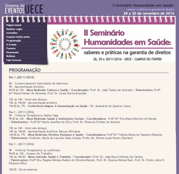 Com a proposta de discussão sobre os “Saberes e práticas na garantia de direitos”, o II Seminário Humanidades em Saúde apresenta suas atividades no período 28, 29 e 30 de novembro, no Campus do Itaperi, no auditório Paulo Petrola da Reitoria da Universidade Estadual do Ceará (Uece), em Fortaleza/CE.