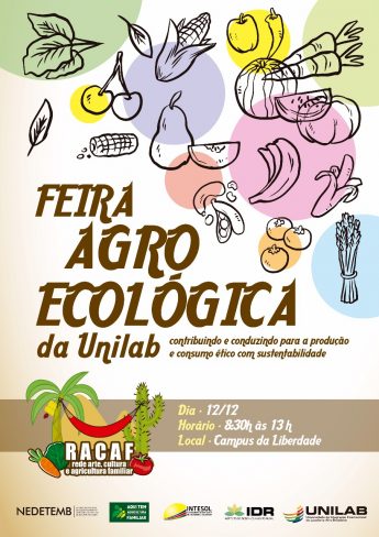 A segunda edição da Feira Agroecológica da Unilab, organizada pela Incubadora Tecnológica de Economia Solidária (Intesol), vinculada ao Instituto de Desenvolvimento Rural (IDR), juntamente com os grupos produtivos da Rede de Arte Cultura e Agricultura Familiar, acontecerá na próxima esta terça-feira (12) pela manhã, a partir das 8 horas, no bloco administrativo do Campus da Liberdade, em Redenção/CE.