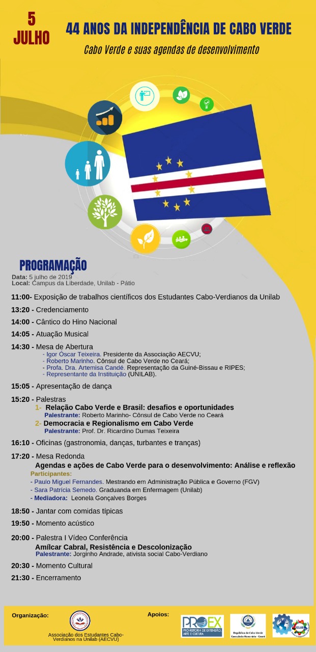 Desta forma, a comemoração da independência de Cabo Verde traz uma programação rica e diversificada, que irá proporcionar momentos de conhecimento, troca de informações e muita reflexão, não só para os cabo-verdianos, mas também para toda a comunidade acadêmica.