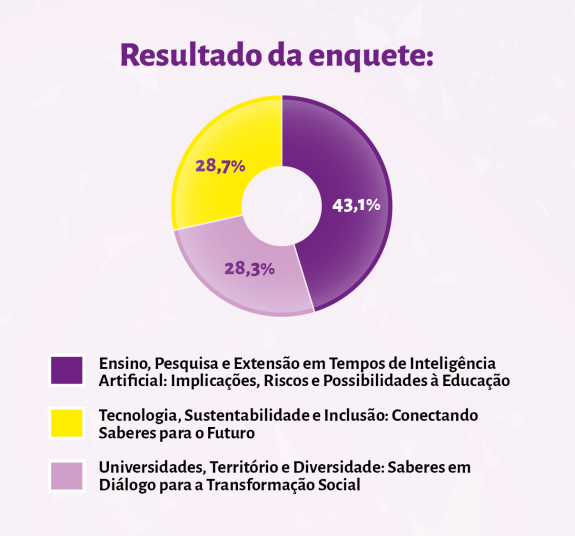 O tema escolhido pela comunidade foi: “Ensino, Pesquisa e Extensão em Tempos de Inteligência Artificial: Implicações, Riscos e Possibilidades à Educação”, com 43,1% votos.