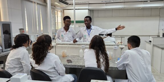 Pela manhã, deram inícios às apresentações de trabalhos, palestras, lançamento de livros e inúmeras oficinas. Entre elas, foi realizada a oficina “Produção de sabão caseiro com óleo residual: inteligência artificial como aliada”, com o estudante timorense do curso de Engenharias de Energias, vinculado ao Instituto de Engenharias e Desenvolvimento Sustentável (IEDS); e Delício Augusto Mondlane, do Laboratório de Análises Químicas do Campus das Auroras.