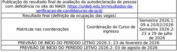 >Todas as informações sobre esse processo seletivo encontram-se nos documentos abaixo, que podem ser acessados na página https://unilab.edu.br/editais-pro-reitoria-de-graduacao/: