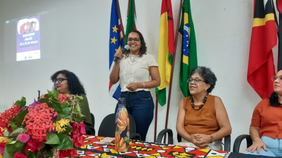 A mesa de abertura contou ainda com a presença da técnica administrativa em educação Lislane Freitas; a terceirizada Fernanda Borba; e ainda as estudantes Hiorrana Silva, Alice Santos e Valentina Sá. Elas trouxeram suas trajetórias, seus enfrentamentos e apoios que tiveram ao longo de suas vidas. “Nas nossas comunidades, nós [mulheres] somos extremamente importantes. Nas nossas comunidades somos linhas de frente perante o nosso movimento. Em solo não indígena podemos sim ser vistas como pessoas fracas, mas a gente sabe que temos todo um povo atrás, que vai fazer a gente transformar as barreiras”, disse a estudante indígena Hiorrana Silva, do curso de Relações Internacionais.