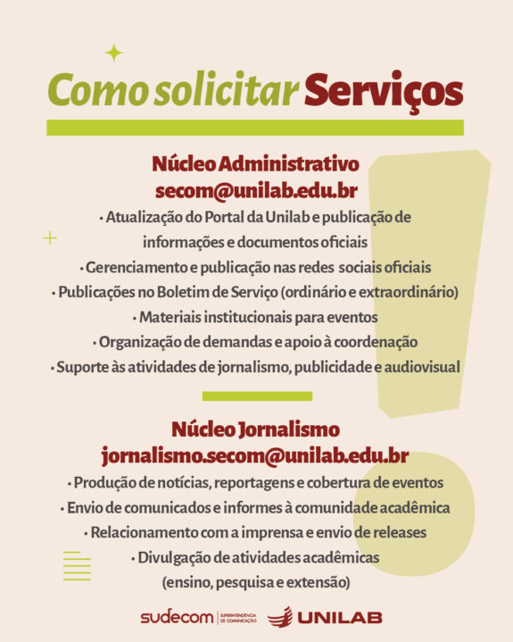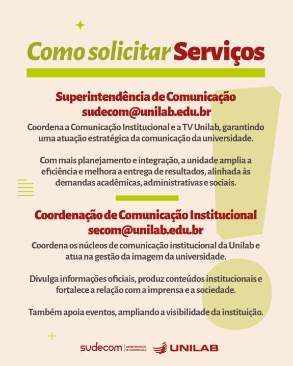 Para mais informações acesse a página da Comunicação Institucional da Unilab.