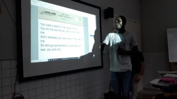 O Projeto “Song Club: inglês com música” é coordenado pela professora Ana Cristina Cunha e tem como bolsista voluntária a aluna Siozimila Fernandes Onhinam.