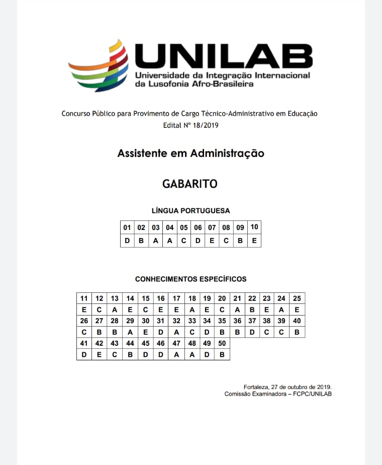 A Comissão Organizadora do Concurso UNILAB, Edital nº 18/2019, diante das inúmeras dúvidas recebidas, relativas à prova de redação oficial, vem a público esclarecer o que se expõe a seguir.